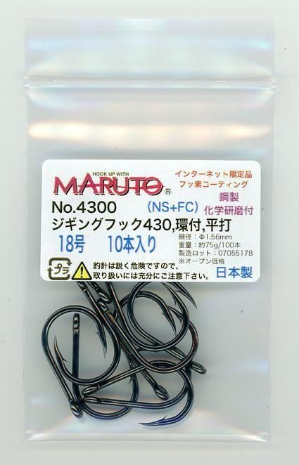 No.4300 ジギングフック430 環付 (◆NS+FC) 18号 ◆10本入り